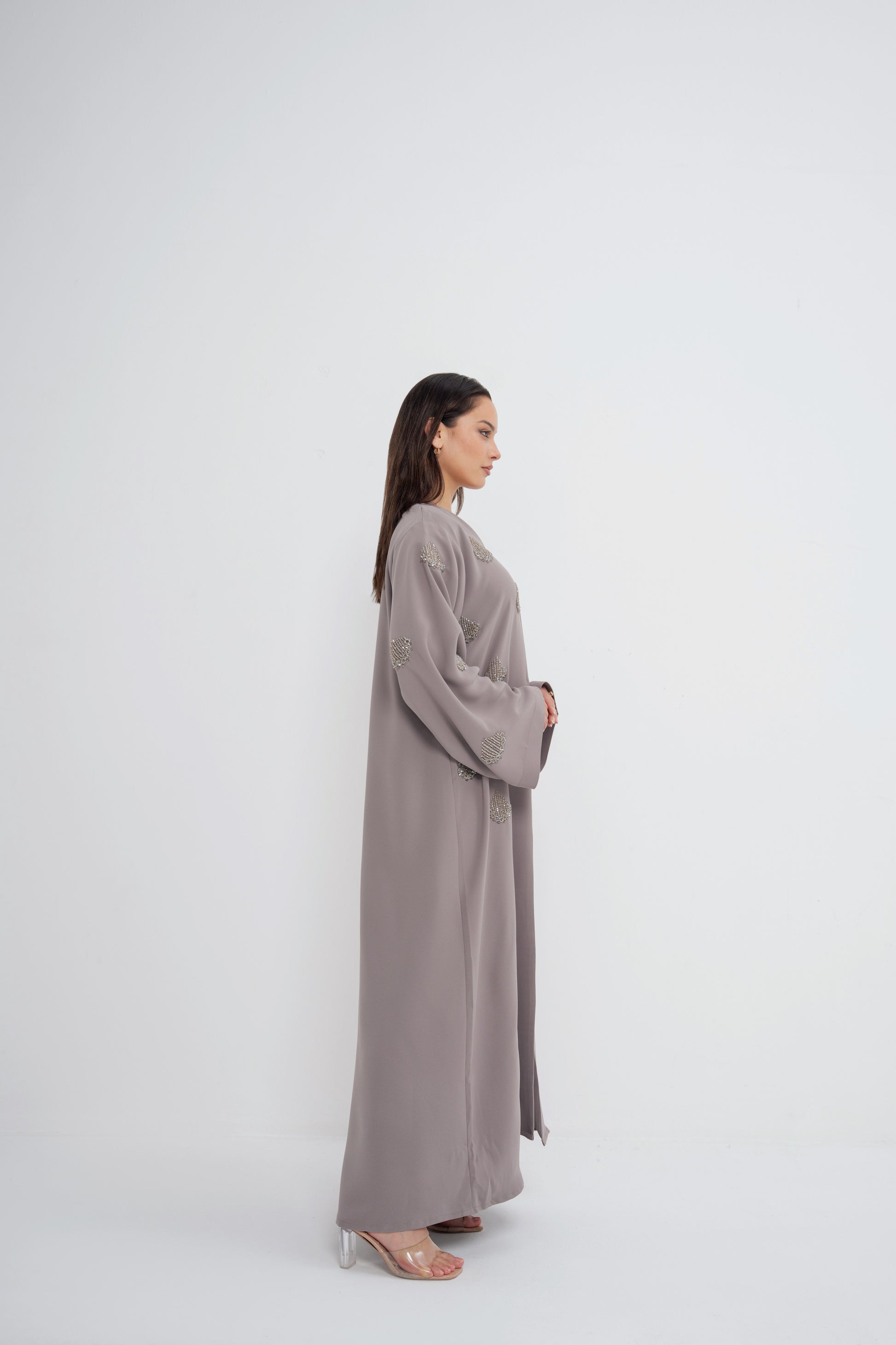 Effortless refinement — Lumiére Taupe reflects understated luxury in its purest form. The taupe tone flows with quiet confidence, elevated by delicate hand-beading that captures the essence of subtle radiance. A piece that speaks softly, yet leaves a lasting impression.