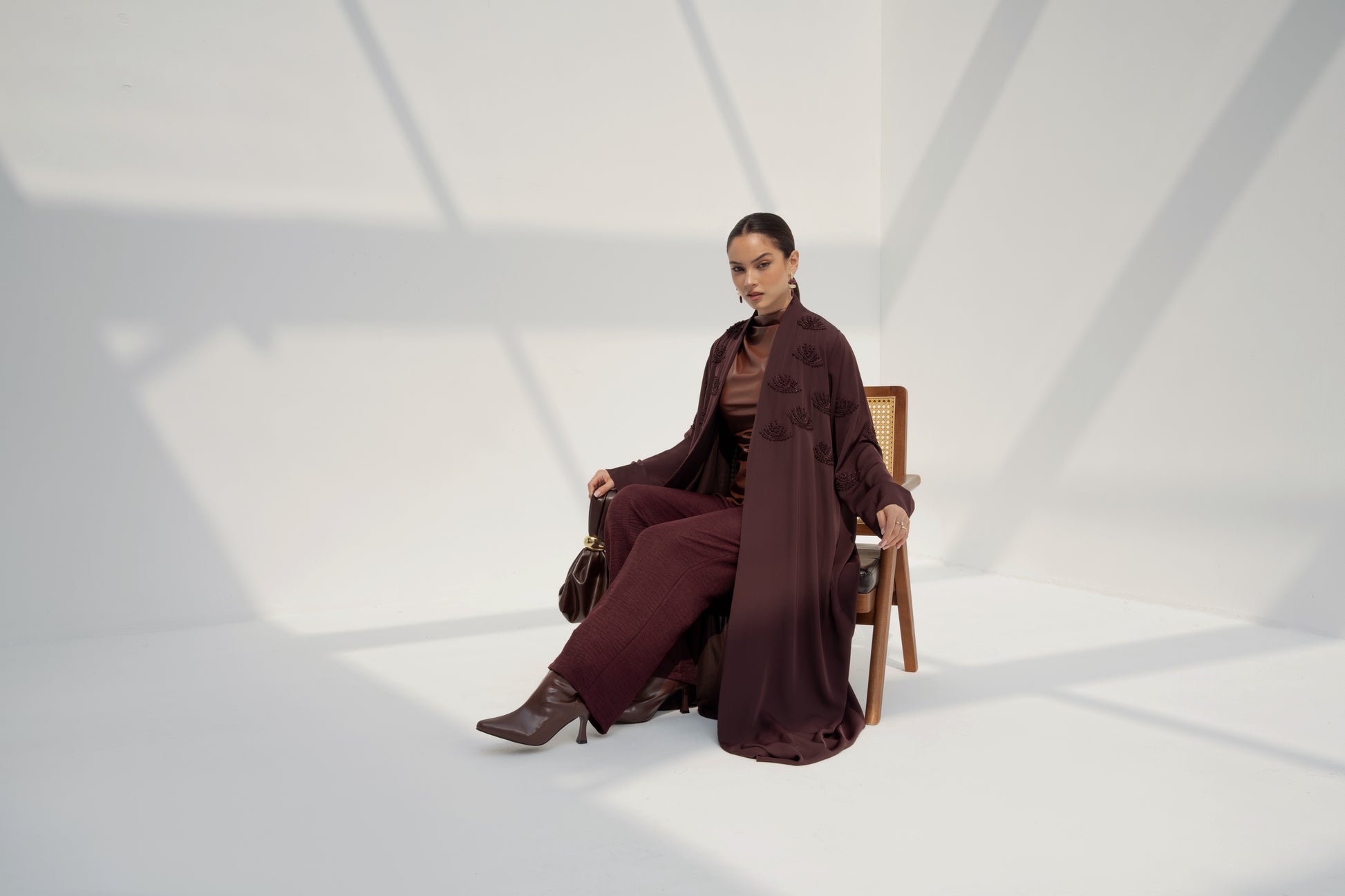 A deep plum statement inspired by winter evenings — Velvet Burgundy combines soft structure with intricate tone-on-tone embroidery. Crafted for the woman who speaks through elegance rather than words.
